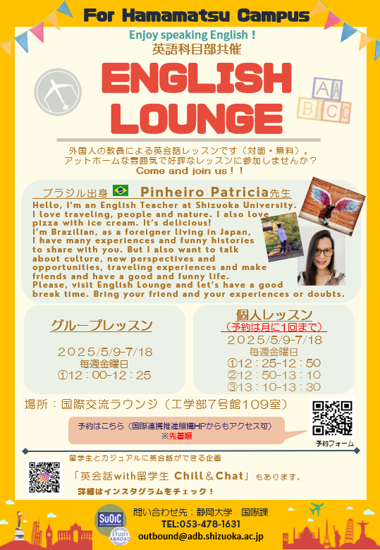 英語教員による対面・無料の英会話レッスン「English Lounge」を今学期も開催します!