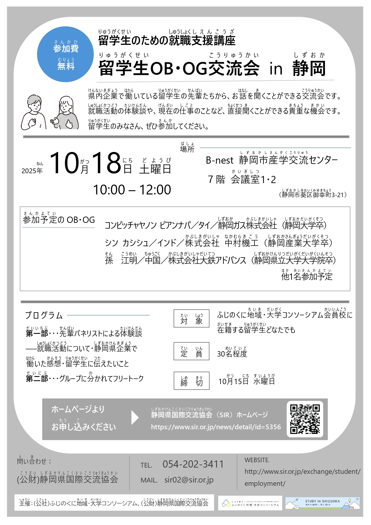 県内企業で働いている留学生の先輩達から、お話を聞くことが出来る交流会です。