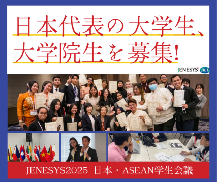 応募フォームなどその他詳細はこちら:対日理解促進交流プログラム JENESYS2025日本・ASEAN学生会議 日本の大学生・大学院生公募について | News | JICE 国際交流