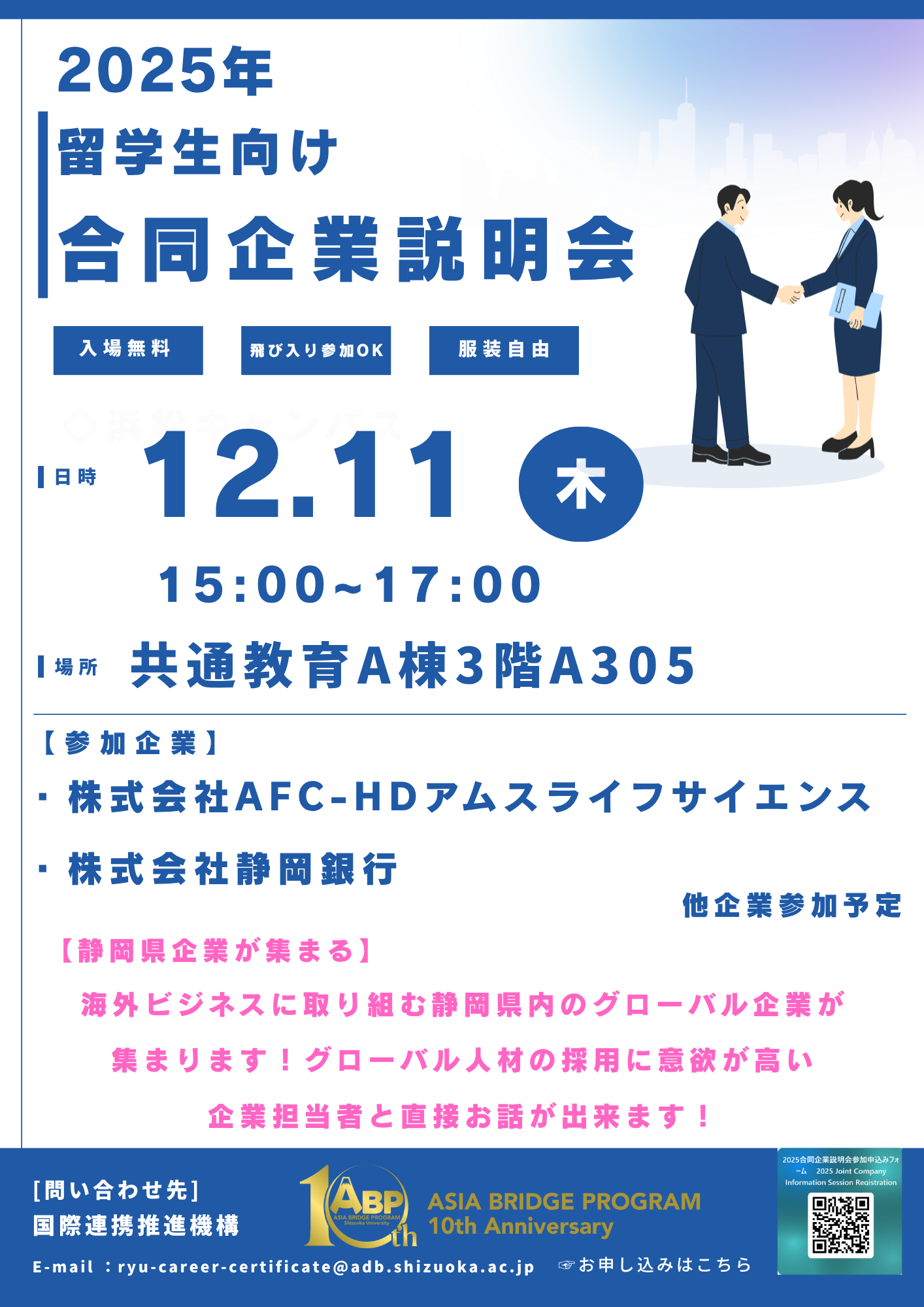 静岡大学静岡キャンパスにて企業説明会を開催いたします。