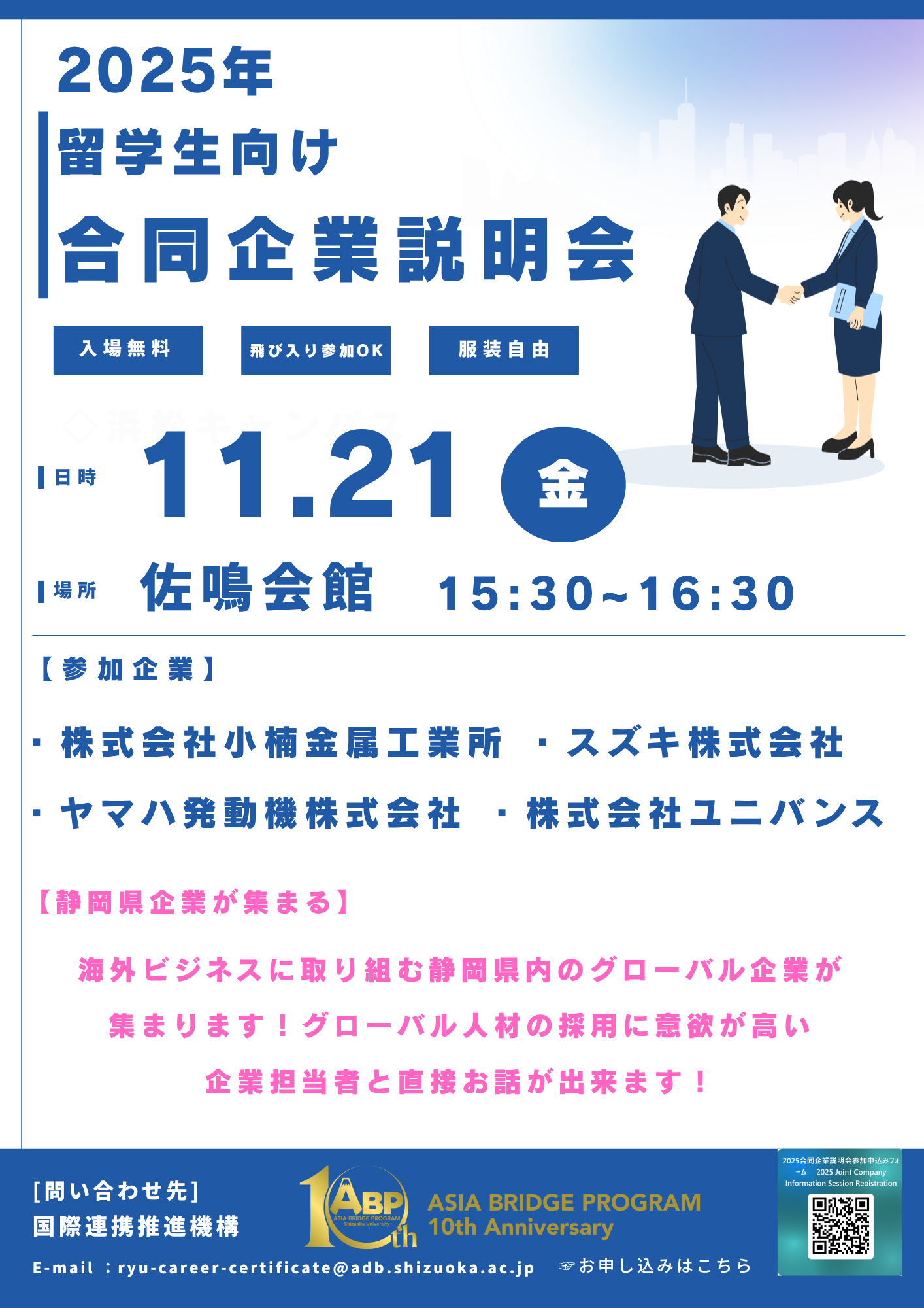 静岡大学浜松キャンパスにて企業説明会を行います。