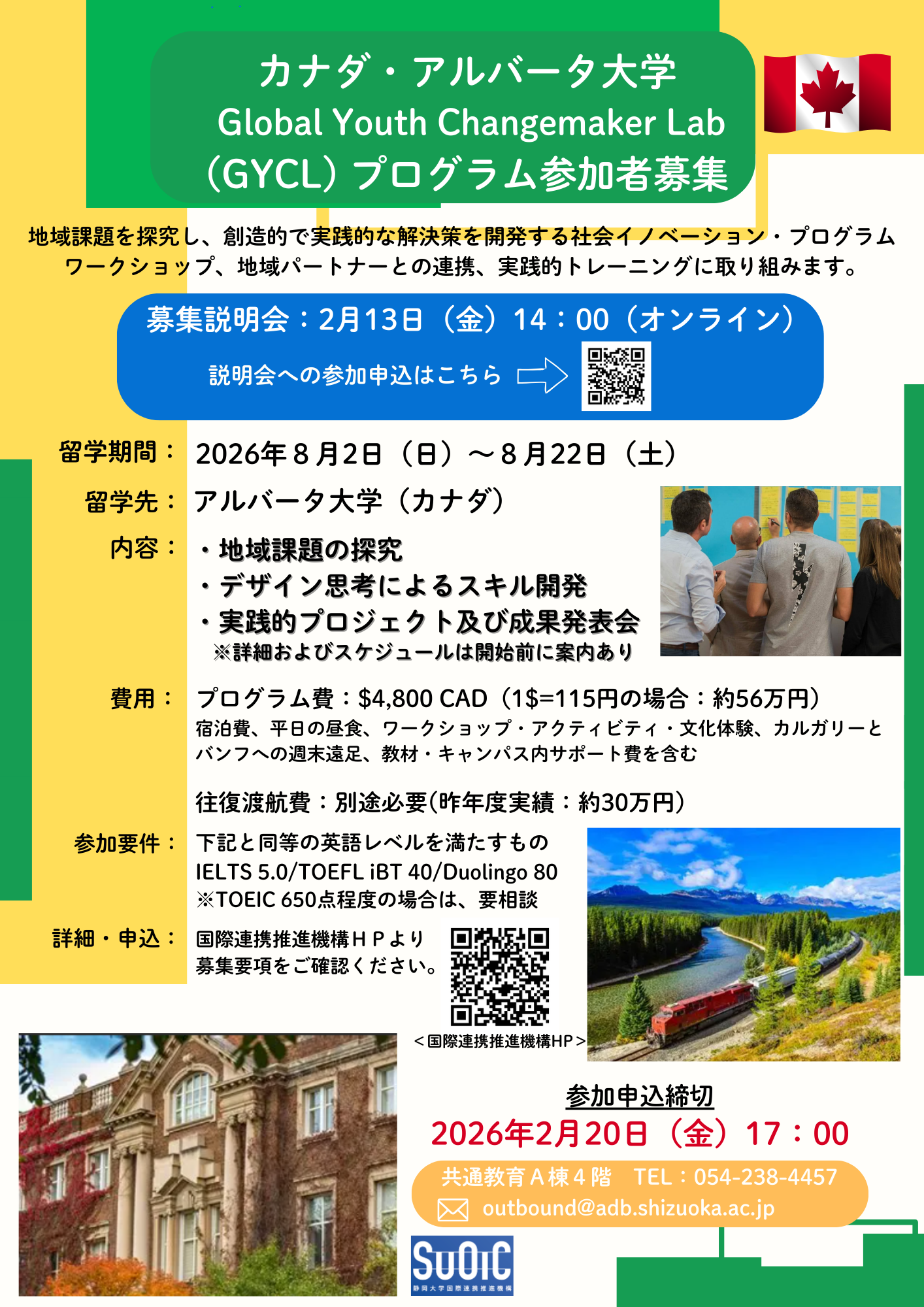 費用:プログラム費 $4,800 CAD、往復渡航費、その他諸費用