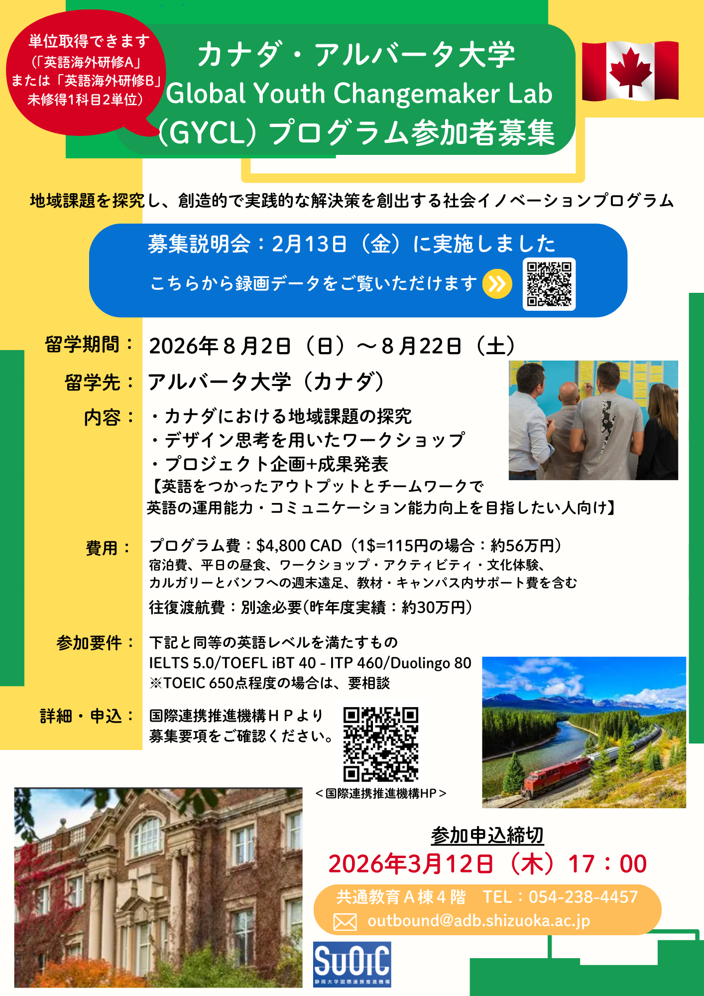 カナダ・アルバータ大学で実施される新しいサマープログラム-Global Youth Changemaker Lab(GYCL)-の参加者を追加募集します!