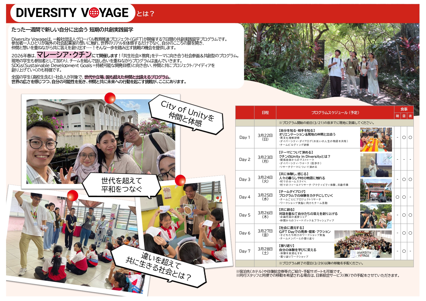 「共創から、自分と世界の新しい可能性を見つける」プログラム、Diversity Voyage(マレーシア・クチン) を実施します。