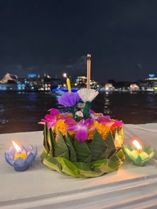 ロイクラトンで流す灯篭 ライトアップされたワットアルン