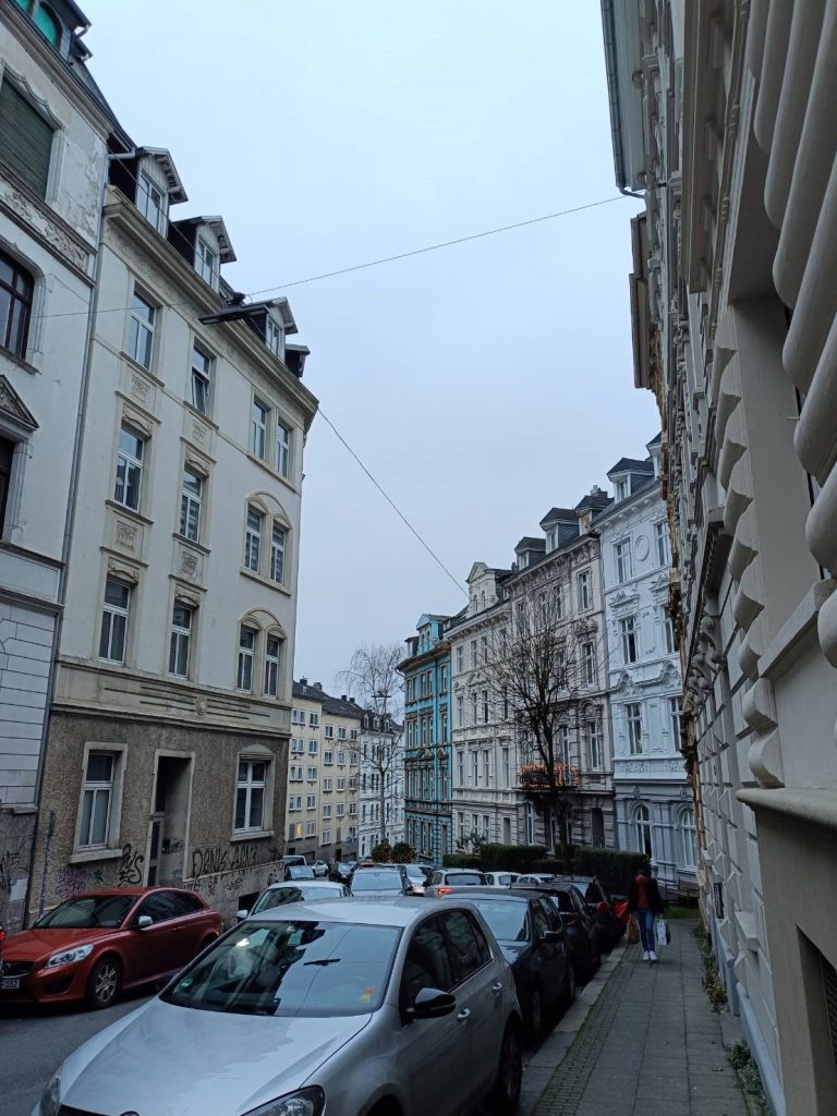 ヴッパタールは元々繊維産業や紡績産業で栄えていたこともあり、労働者が数多く暮らしていたことから昔ながらの住宅街が目立ちます。駅から少し坂を登っていくと非常に美しい建物たちが坂の両側を占め、その景色は圧巻です。また、街全体が谷のような構造になっていることで坂道や階段がいたるところにあります。そのような街の中にあるヴッパタール大学は、まるで静岡大学の静岡キャンパスを連想させます。大学内では学生たち以外に散歩する住民らも見かけられ、大学と地域が深く交わっていることがわかります。